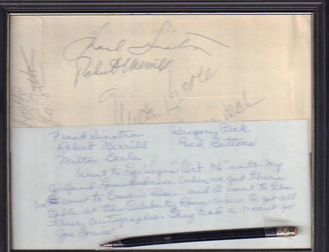 Frank Sinatra And Others Signed Page With Signing Pen Used By Him